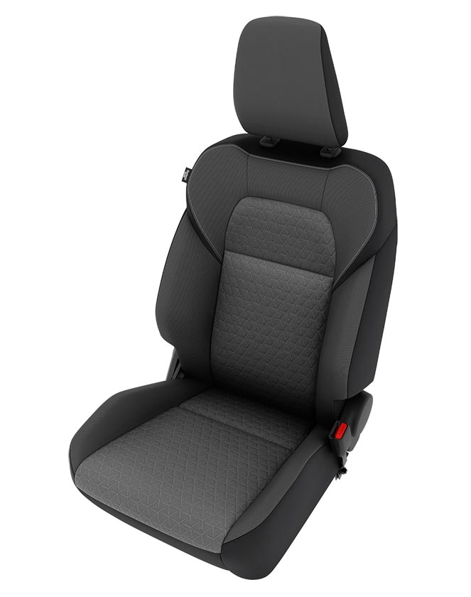 V designu předních sedadel se odráží unikátní charakter Swiftu. Zesílené polstrování v oblasti ramen a boků zvyšuje pohodlí řidiče a spolujezdce, ale také dodává sedadlům sportovnější vzhled. Výsledný efekt je dále podpořen geometrickým vzorem textilního čalounění.